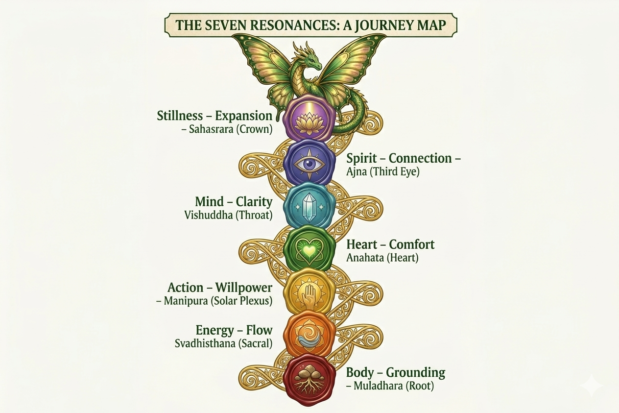 Within our gold seal drifts Ozmi, the fairy dragon, alongside the elegant Anica Divine. These are the guardians of our sanctuary - waiting to be found between the leaf and the story.